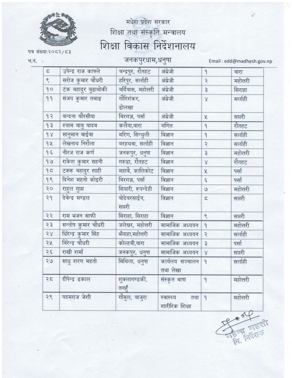 EDUCATION CLUSTER - MADHESH PROVINCE